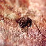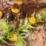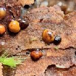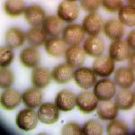 Sporas: (10-)11-13(-15) µm, sīki kārpainas, ar biezu apmali un dīgšanas poru, kas aizņem >1/3.
