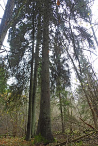 Lēdurgas kapu egle saules apspīdēta, bet nokaltusi, 2025.