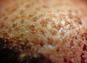Medainās vilkpienaines Lycogala melleum sporu tīkliņam ir tikai 4-5 acis pa diametru, 2022.