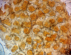 Leoparda vilkpienaines Lycogala leopardinum pūslīši polarizētā gaismā 100x palielinājumā, 2025 . Komentēt (0) Foto: Julita Kluša