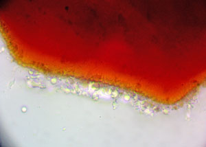 Lielsporu kriksītes Licea pusilla skaldnes mala ar vienu raksta rindu, KOH šķīdumā, 2022.
