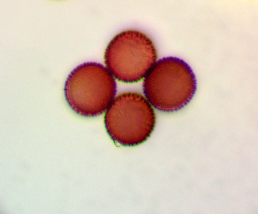 Kukurūzas pumpurītei Physarum pseudoalexandrowiczii reizēm sporas grupās pa 2-4