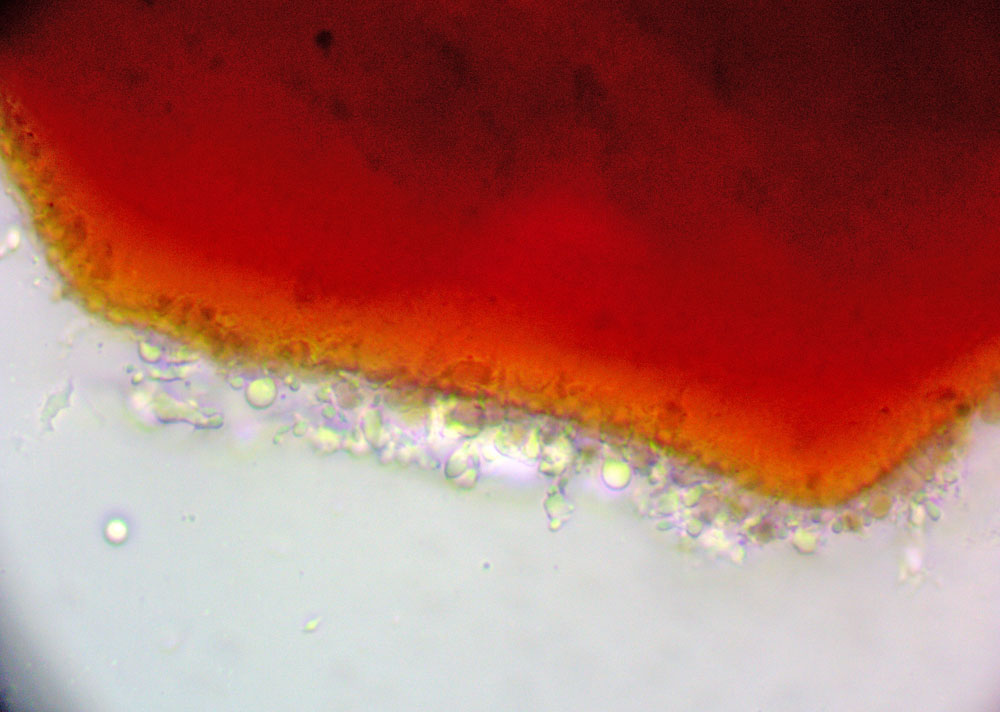 Lielsporu kriksītes Licea pusilla skaldnes mala ar vienu raksta rindu, KOH šķīdumā