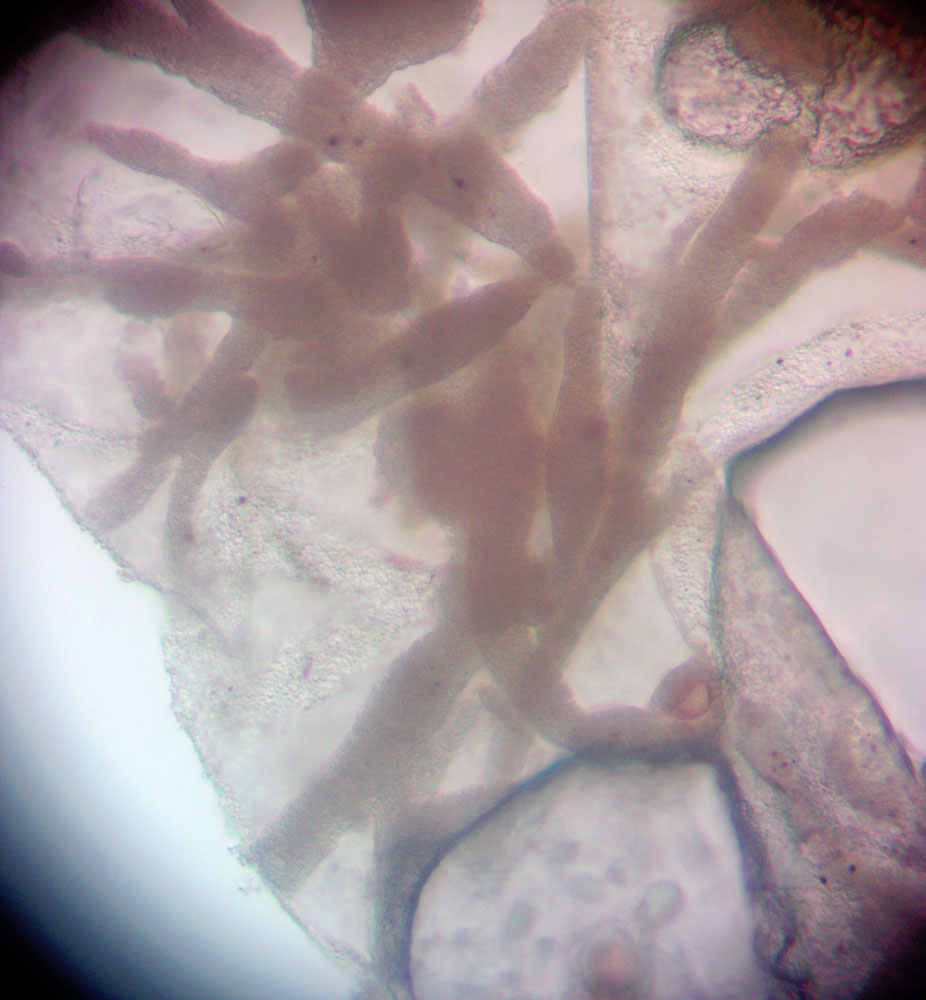 Lielsporu padzelksnīte Badhamiopsis macrospora, kapilīcija dzelkšņi