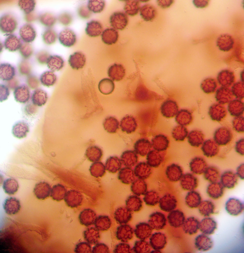 Sūnu vizulīte Diachea muscorum, perīdijs, kaļķainais kapilīcijs un sporas