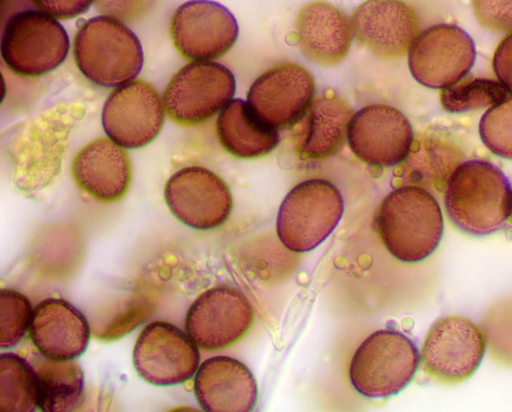 Dažādsporu ragansviesta Fuligo licentii sporas ir patumšas un ovālas