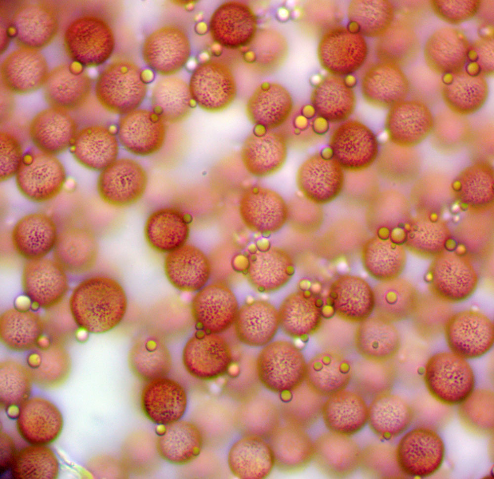 Parastais ragansviests Fuligo septica, sporas 1000x palielinājumā