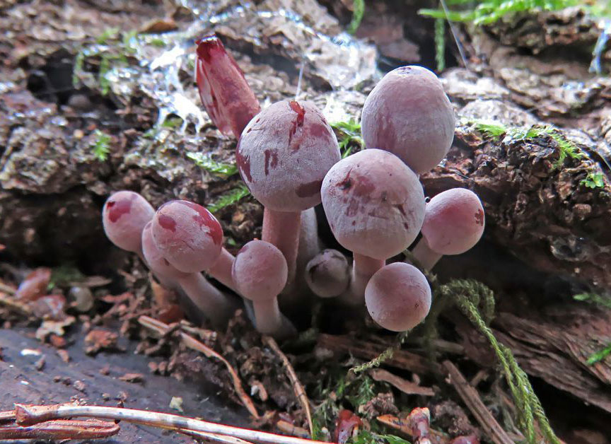 Konkrēti augi : Lapiņsēnes ; Sēntiņas Mycena; Asins sēntiņa Mycena haematopus
