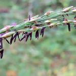 Vietējā suga. Zilganas garenas lapas, kas veido ciņus. Ziedu skara izstiepta, garena un šaura, brūni violeta, gandrīz melna. Sīkāks apraksts: latvijasdaba.lv Atradnes pēc Dziedavā publicētajiem foto: