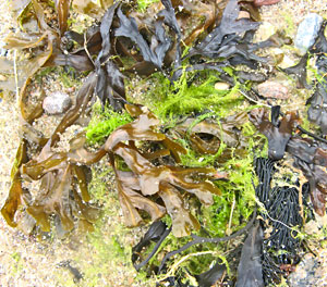 Sārtaļģe (tievā) ar sūneņiem un brūnaļģe ar jūras zīli - no jūras izskalotie, 2015.