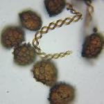 Dobuļu fosombronijas Fossombronia foveolata sporas mikroskopā, 2015.