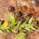 Sporas: (10-)11-13(-15) µm, sīki kārpainas, ar biezu apmali un dīgšanas poru, kas aizņem >1/3.