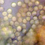 Gandrīzsajaucamā vilkpienaine Lycogala paraconfusum, sporas, 2025.