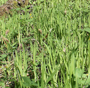 Matainajam grīslim Carex pilosa lapas ir ļoti platas un apmatotas, 2014.