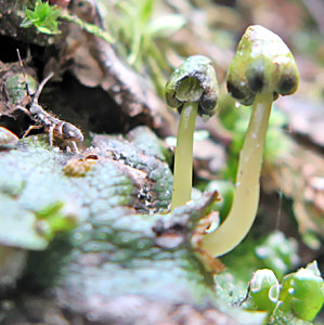 Konusgalvītēm Conocephalum konusveidīgie sievišķo gametangiju sastati izskatās pēc sēnītēm, 2012.