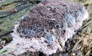 Gļotsēne Fuligo candida sāk melnēt, 2012.