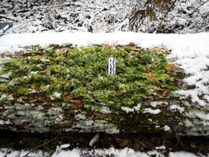 Noras īsvācelītes Brachythecium albicans ar sniega graudiem, 2014.