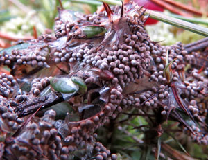 Virdžīnijas burvjulazdas Hamamelis virginiana ziedpumpuri rudens sākumā, 2016 . Komentēt (0) Foto: Julita Kluša