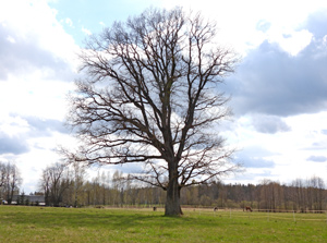 Skats no mazākā Lazdiņu ozola; fonā dižākais, 2021.