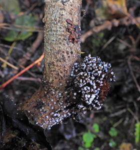 Plakanā mizaine Perichaena depressa uz apses kritalas, 2021 . Komentēt (0) Foto: Julita Kluša