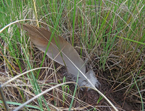 Dzērves Grus grus spalva purvā, 2019.