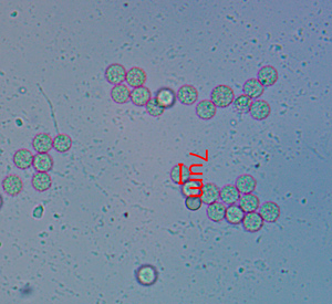 Pušķainā školādes gļotsēne Stemonitis axifera , sporas 1000x palielinājumā, 2020 . Komentēt (0) Foto: Inguna Riževa