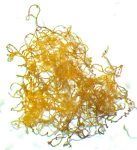 Gailošās pilienītes Hemitrichia lutescens sporas, 2020.