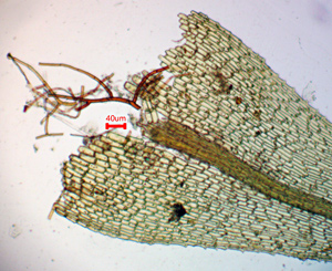 Pļavas avoksnes Philonotis marchica lapa ar šūnām un papilām to augšpusē, 2020 . Komentēt (0) Foto: Julita Kluša