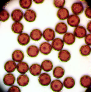 Vīnogu vilkpienaine Lycogala botrydium , sporas, iekrāsotas ar Methylene blue, 2023 . Komentēt (0) Foto: Julita Kluša