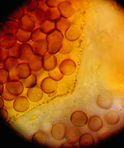Gaišdzeltenā bumbulīte Oligonema flavidum , kapilīcijs un sporas 1000x palielinājumā, 2024 . Komentēt (0) Foto: Julita Kluša