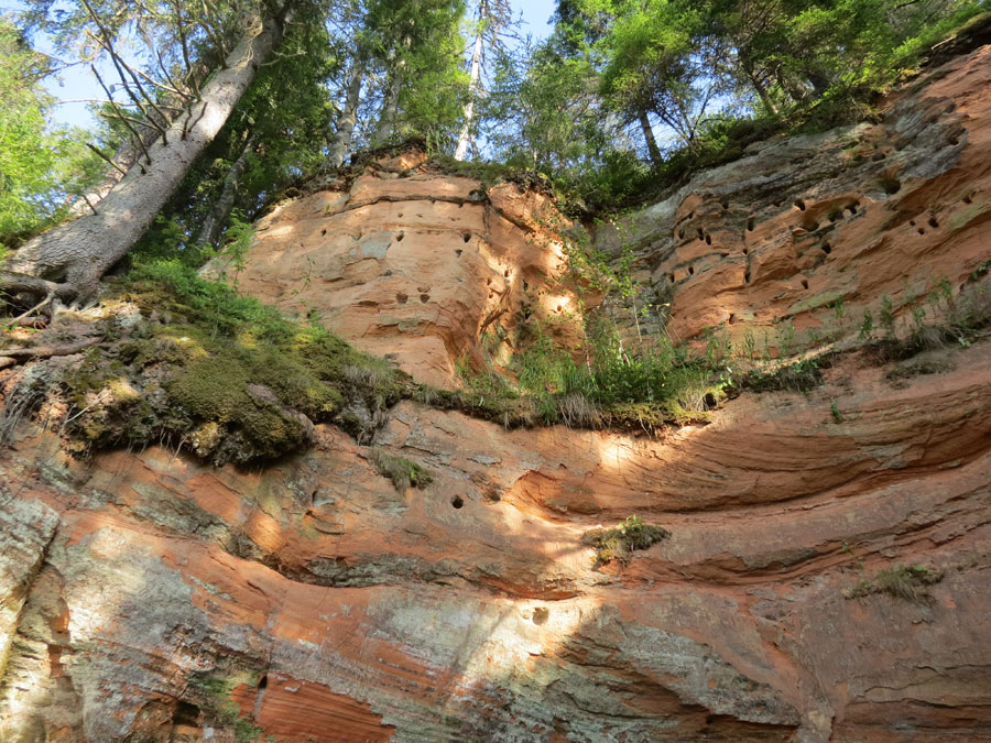 Tēmas -> Nedzīvā daba > Iežu atsegumi = Latvijā veidojušies smilšakmens, dolomītiežu un saldūdens kaļķiežu atsegumi, kraujas, klintis.