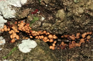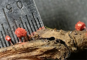 Krumpainā dzelksnīte Badhamia melanospora uz neliela koka stumbra, mērogā ar pirkstiem, 2021 . Komentēt (0)