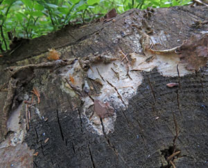 Veca lielā pergamentsēne Phlebiopsis gigantea uz celma, 2016.
