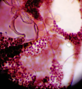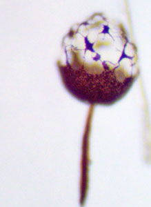 Violetās lākturītes Cribraria violacea kājiņa mikroskopijā, 2025.