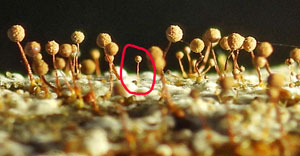 Violetā lākturīte Cribraria violacea mērogā ar parastajām lākturītēm C. vulgaris, 2025.