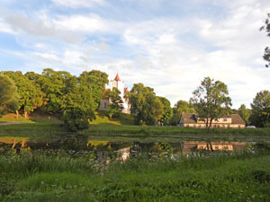 Skats uz Aizputes baznīcu pāri dzirnavdīķim no Misiņkalna puses, 2007.