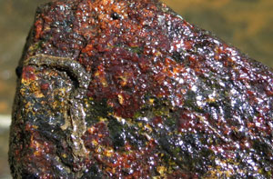 Akmens Vitrupē ar savu zemūdens dzīvību - aļģi Hildenbrandia rivularis, gliemežiem u.c., 2014.