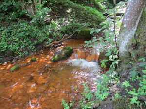Avots, kura bagātie ūdeņi rada Saltupi, izskatās oranžs, jo ir bagāts ar dzelzi, 2013.