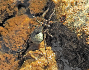 Zirnekliene ar olu kokonu uz akmeņiem upē, 2019.