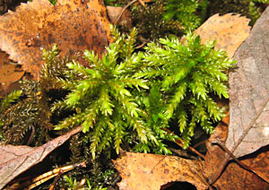 Parastā kociņsūna Climacium dendroides starp rudens lapām, 2011.