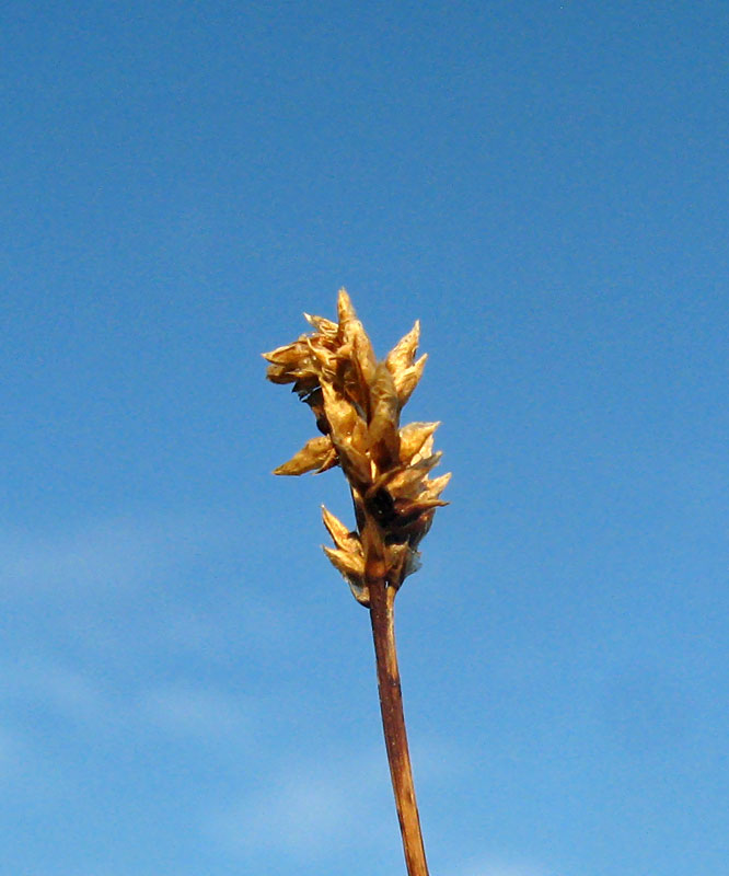 Divputekšņlapu grīšļa Carex diandra vārpiņa pret debesīm