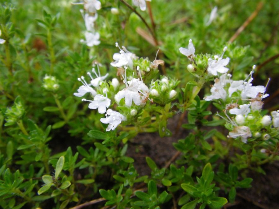 Mazā mārsila Thymus serpyllum baltā forma savvaļā