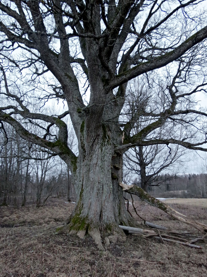 Varenais ozols ar piepēm un tikko lūzušu zaru