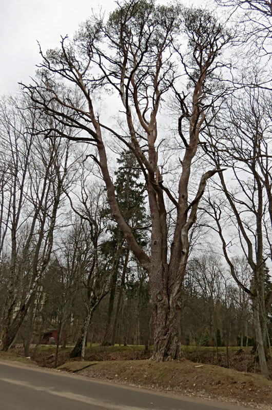 Laurenču priede pilnā augumā; zaļo tikai pašā augšpusē