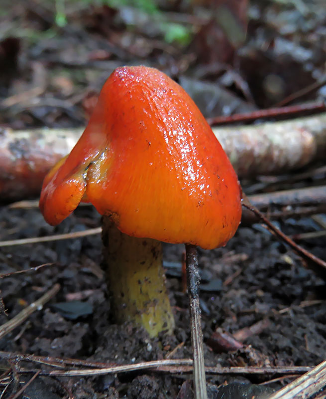 Melnējošā stiklene Hygrocybe pseudoconica ar konisku cepurīti