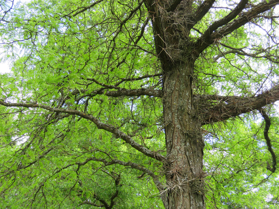 Viena no Latvijā lielākajām trīsērkšķu gledīčijām Gleditsia triacanthos - Salaspils botāniskajā dārzā