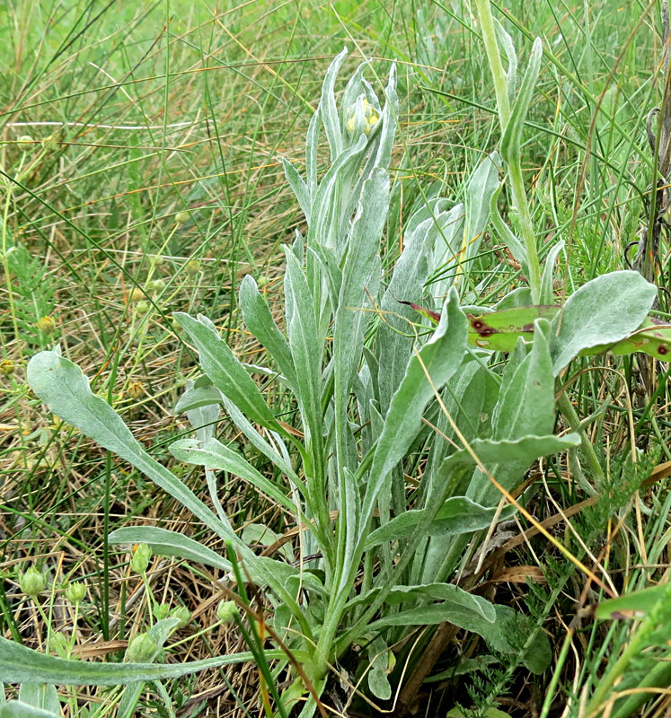 Dzeltenās kaķpēdiņas Helichrysum arenarium lapas
