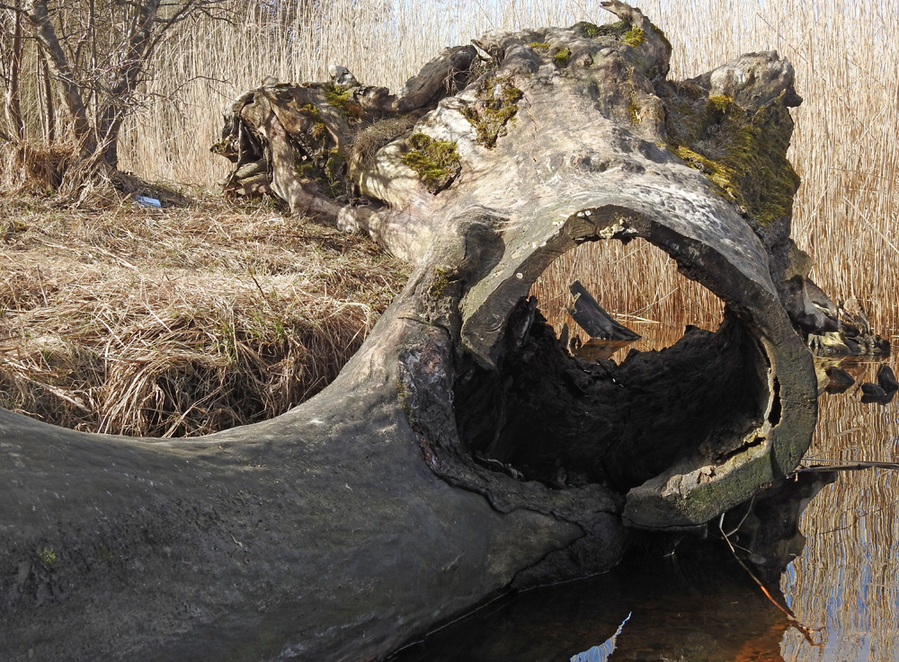 Kā plaukstā paņemts caurs melnalkšņa celms - viss, kas palicis no dižā melnalkšņa