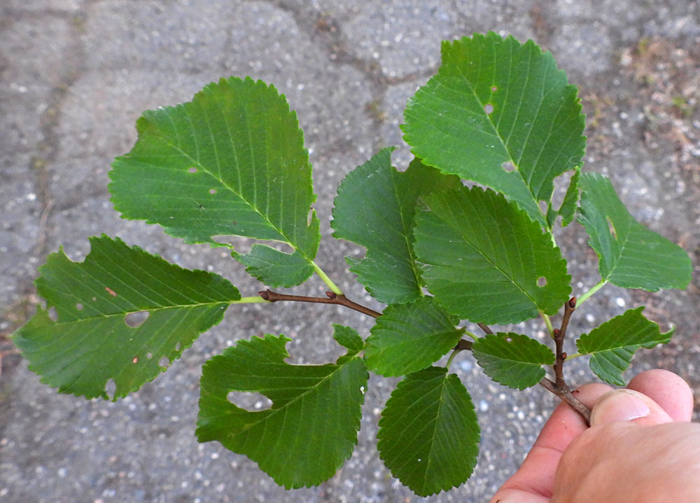 Korķa gobas Ulmus minor f. suberosa zariņš ar lapām