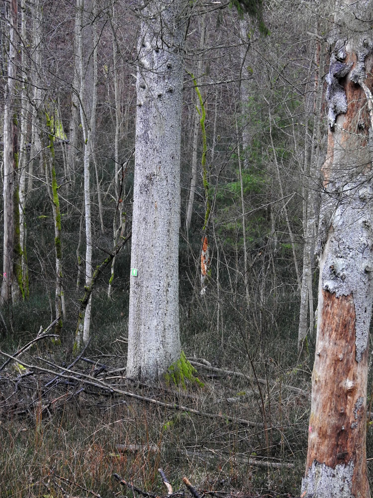 Murjāņu 1. egle ar dižkoka zīmi, sānā nokaltusī 2. egle